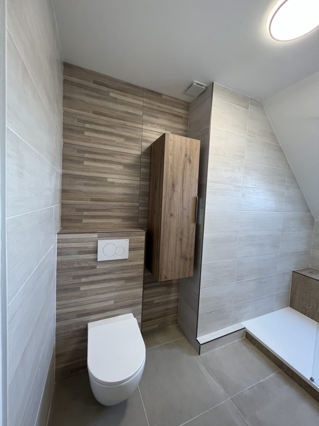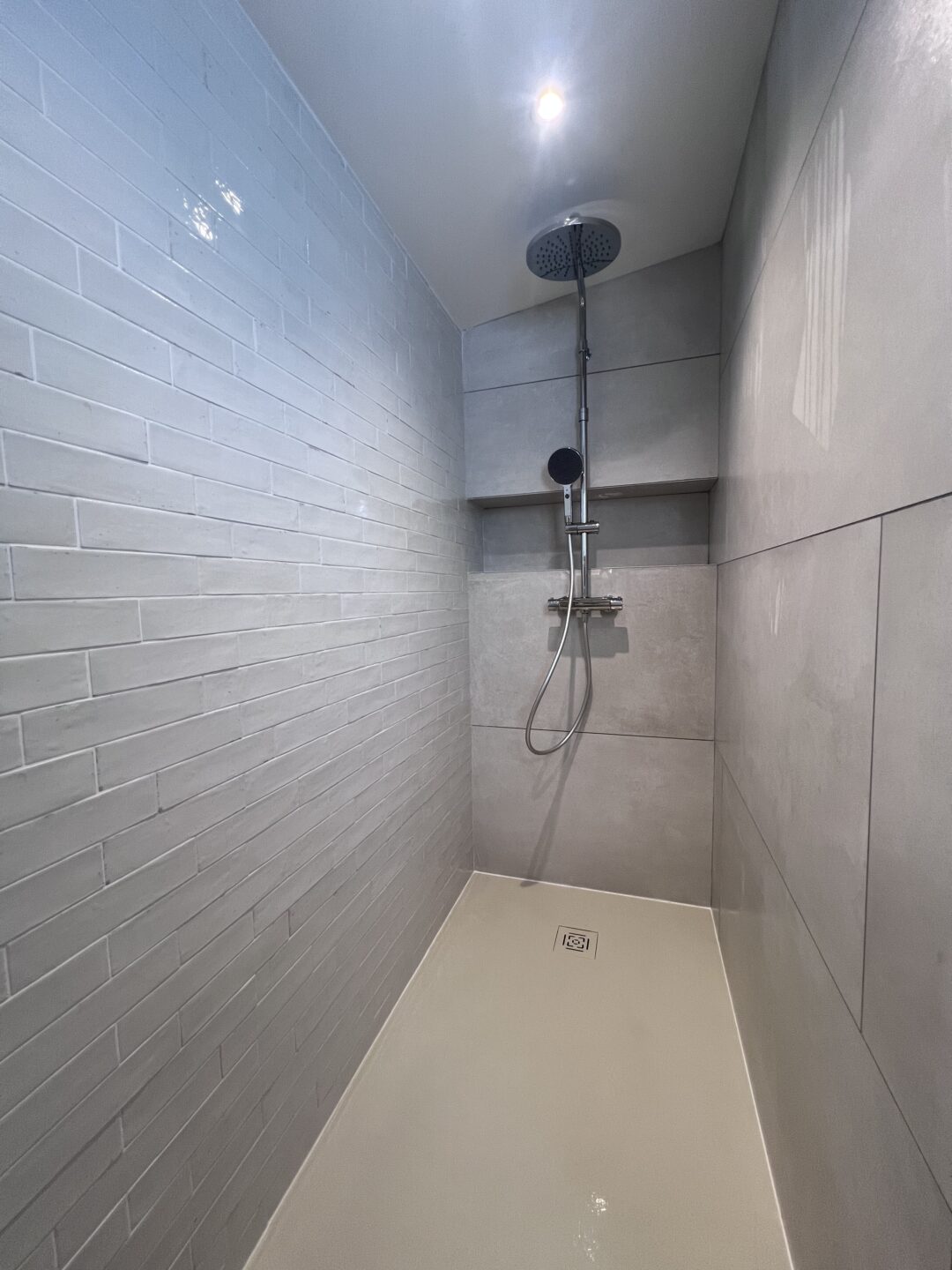 - Choisir le bon revêtement pour anticiper les projections d’eau. Du carrelage et une peinture murale résistante à l’humidité par exemple.